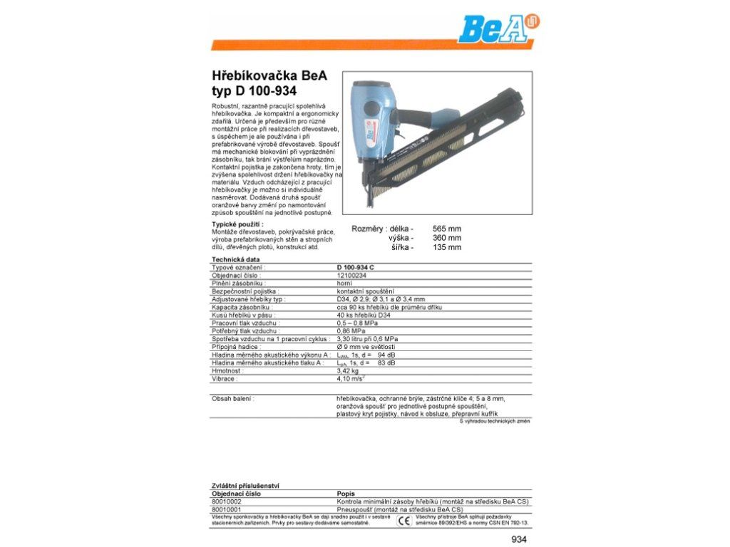 BEA Hřebíkovačka D 100-934 C, 12100234