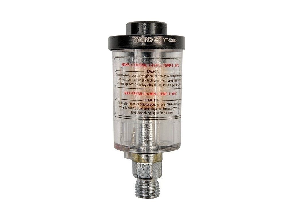 Mini filtr Yato YT2380 je určen k odstranění prachových částic, kondenzované vody, případně oleje vznikající stlačením vzduchu v kompresoru. Tento malý filtr je předurčen k montáži přímo ke vstupu vzduchu do nářadí, nebo vsazením do přívodu hadice.