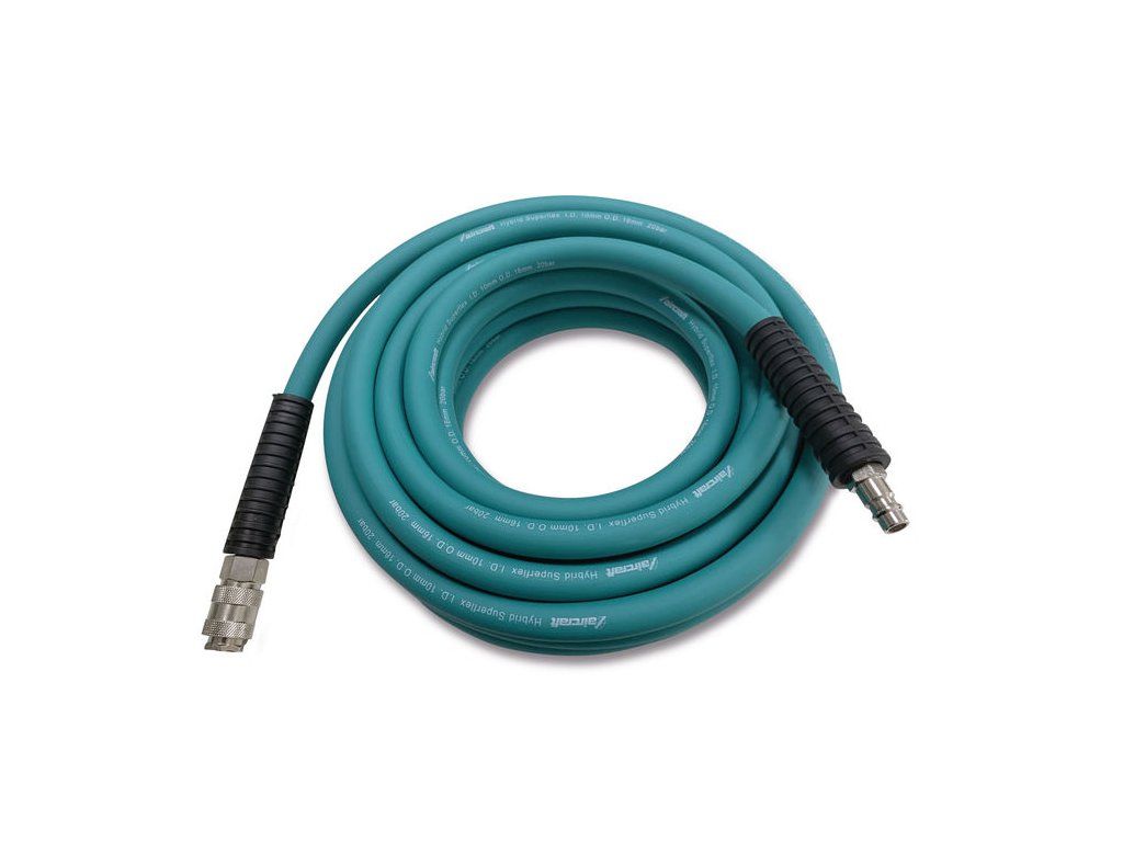 Hadice na stlačený vzduch, určená pro profesionální použití.- Hybridní polymerní materiál s textilní vložkou - extrémně pružná i při nízkých teplotách