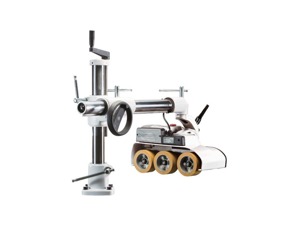 Podavač je osazen nejmodernějším DC servo motorem o příkonu 400W s plynulou regulací posuvu. Ušetří více než 50% nákladů na elektrickou energii při zachování točivého momentu zejména při nižších rychlostech ve srovnání s podobnými velikostmi podavačů s běžným motorem okolo 750W. Již žádná demontáž krytu a výměna ozubených kol Vás nečeká. Jednoduše si navolíte požadovanou rychlost na digitálním ovladači v rozsahu 2 - 22 m/min. Perfektně odpružené rolny průměru 120mm a šířky 60mm mají výbornou přilnavost a skvěle se vyrovnávají s nerovnostmi. Pokud se potřebujete dostat blíže k nástroji, lze standardní rolnu nahradit speciální úzkou rolnou šířky 25mm, která se dodává na přání.