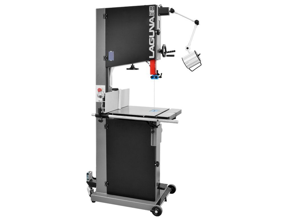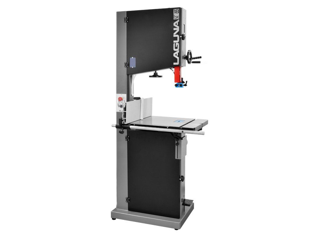 Pásová pila LAGUNA 18BX je vybavena těžkým stabilním rámem a silným 2,2 kW asynchronním motorem. Broušený pracovní litinový stůl o rozměrech 660 x 508 mm poskytuje stabilitu i při řezání větších dílců. Stůl lze naklopit v rozmezí od -7° do +45°. Masivní vysoké podélné pravítko s čepovacím dorazem je snadno nastavitelné a lze nainstalovat do dvou pozic (vertikálně a horizontálně). Pevná litá kola jsou vyvážená a opatřena polyuretanovým páskem po celém obvodu kola. Pásek je navržen tak, aby zvládal vyšší teplotu a vydržel déle než běžné pryžové výplně kol. Šnekový převod horního vedení pásu zaručuje maximální stabilitu i při nejvyšší výšce řezu. Pro okamžité zastavení pily je spodní kolo vybaveno kotoučovou brzdou, která se aktivuje sešlápnutím pedálu.