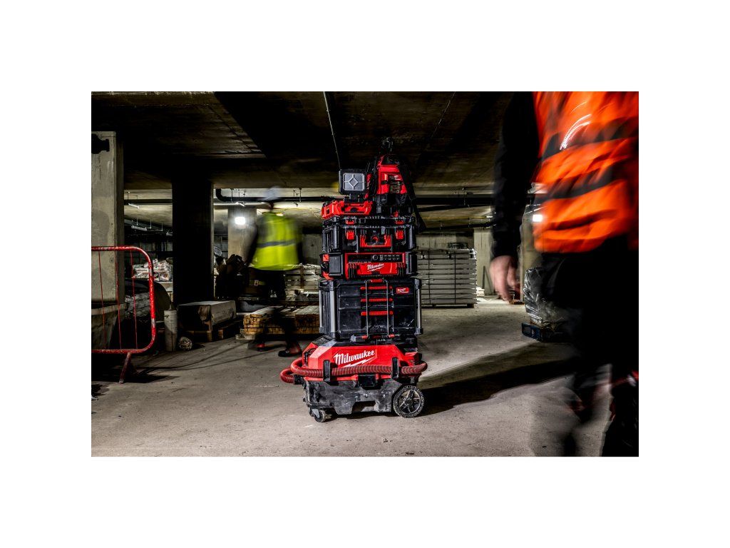 - Horní část kompatibilní s PACKOUT™, velká zadní kola a uzamykatelná přední kolečka umožňují snadnou přepravu nářadí a příslušenství po pracovišti