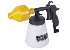 Pneumatická tryskací pistole na pískování sodou, délka 247 mm, kapacita nádrže 1,2 litru, vzduchová přípojka 1/4". 1 přesná kovová tryska a 3 široké trysky.