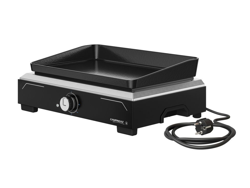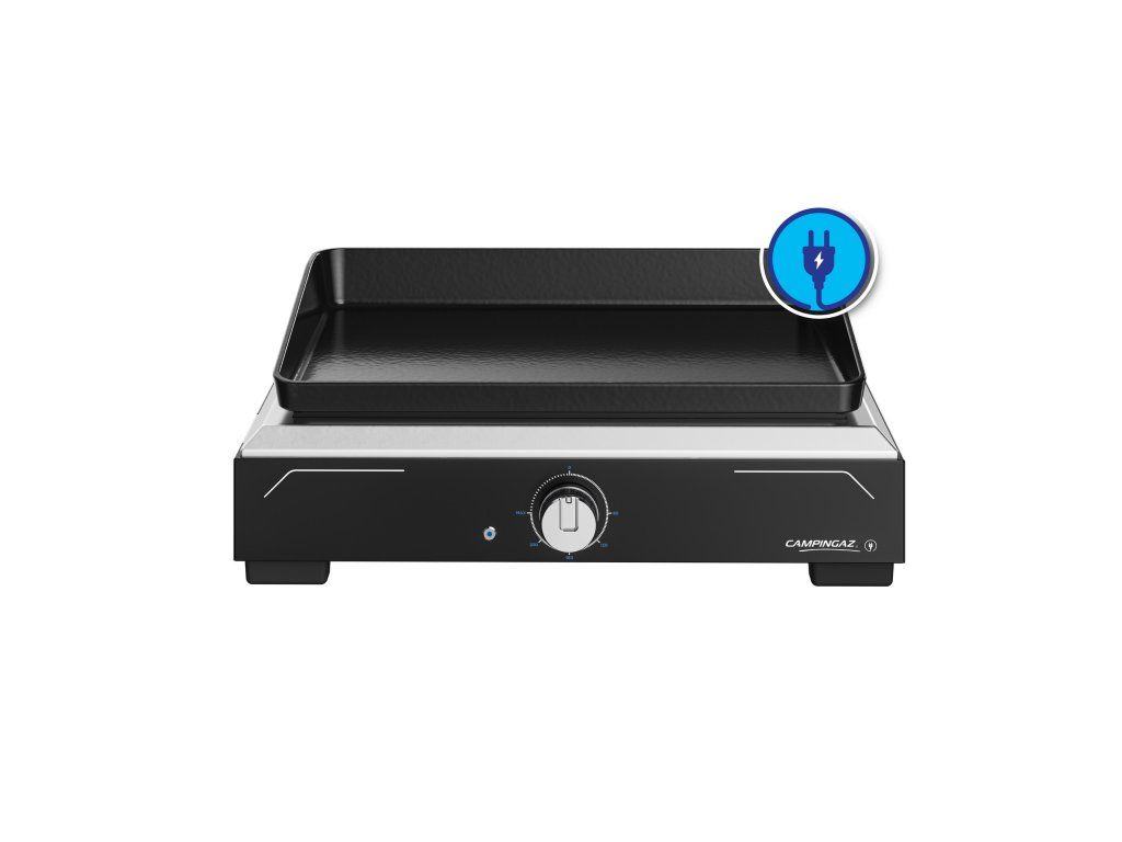 Elektrický gril Plancha. Hladká litinová plocha, na které lze připravit i jemné palačinky. Velký výkon tohoto grilu zaručí ugrilování i pořádného šťavnatého steaku. Snadno přístupná nádoba na tuk, kterou lze mýt v myčce nádobí, zajišťuje rychlé a jednoduché čištění. Předmontovaný stolní gril bez nutnosti použití šroubováku! Certifikován pro vnitřní i venkovní použití, což vám nabízí klíčovou flexibilitu. Vynikající rovnoměrné rozložení tepla, které umožňuje elektrický topný systém Campingaz®. Integrované rukojeti pro snadnou přepravu a skladování. Postaveno tak, aby vydrželo – vyrobeno z pevných a odolných materiálů. Velká litinová varná plocha poskytuje dostatek prostoru a potřebnou odolnost. Přednastavená volba teploty pro snadné její snadné řízení. Háčky na pohodlné uložení kabelu se zástrčkou. Elegantní a moderní městský design, který se hodí do každého prostoru.Doplňkové parametry