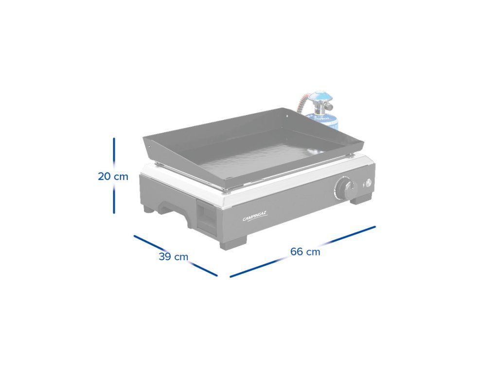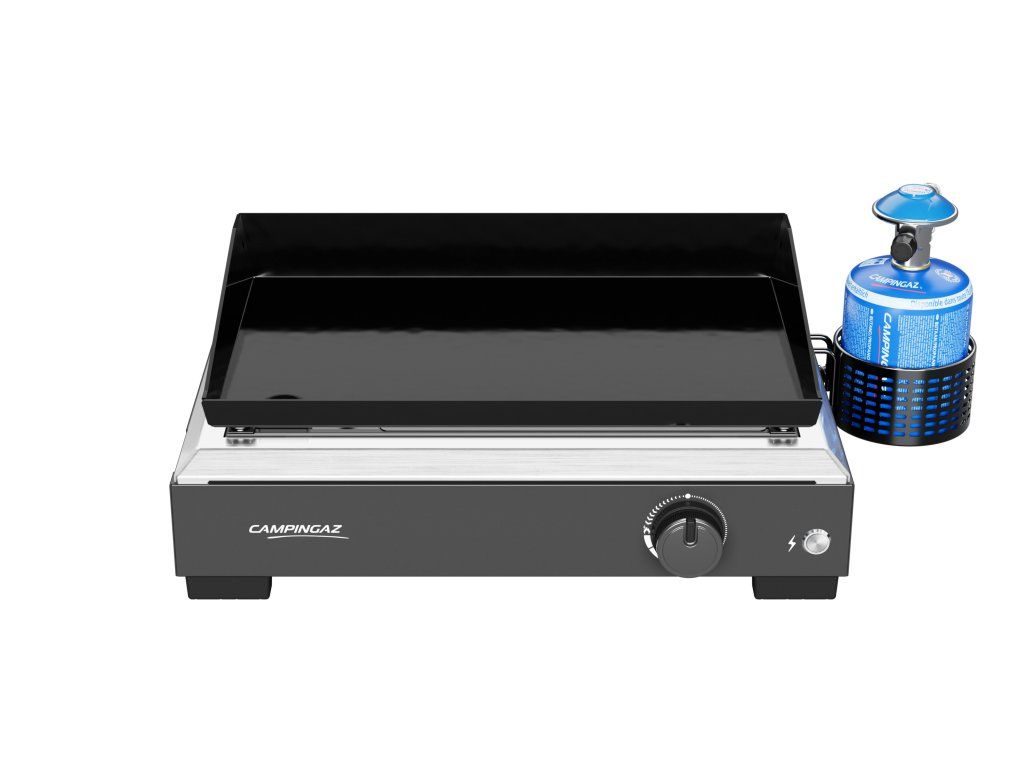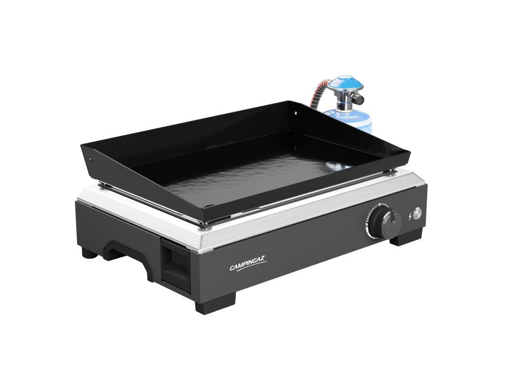 Tento elegantní černý plancha gril přináší skvělý výkon v kompaktním provedení. Skvěle se hodí pro život ve městě. K provozu mu stačí plynové kartuše, které jsou lehké a zabírají jen minimum místa. Je tak ideální na balkon, terasu nebo na víkendový výlet. Díky technologii Campingaz® Blue Flame Burner gril rovnoměrně distribuuje teplo, zatímco elektronické zapalování umožňuje snadný start. Čištění je jednoduché díky snadno přístupné misce na tuk, která je vhodná i do myčky. Praktická integrovaná madla usnadňují přenášení a skladování. K vyrovnání grilu slouží 2 výškově nastavitelné zadní nohy. Je připravený k použití hned po vybalení, bez nutnosti montáže. Hadice, regulátor i baterie jsou součástí balení, takže v krabici je vše potřebné. Materiál grilovací plochy: smaltovaná ocel. Počet hořáků:1 Blue Flame; Systém čištění: zásuvka na tuk. Rozměr plochy: 30x45 cm, Rozměr grilu: 66 x 39 x 20 cm Hmotnost: 10,5 kg.Doplňkové parametry