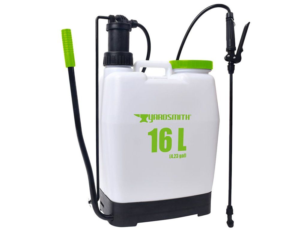 Plastová tlaková nádoba na 16 litrů a postřikovač zvládne ošetřit větší plochu nebo větší množství keřů a stromků.