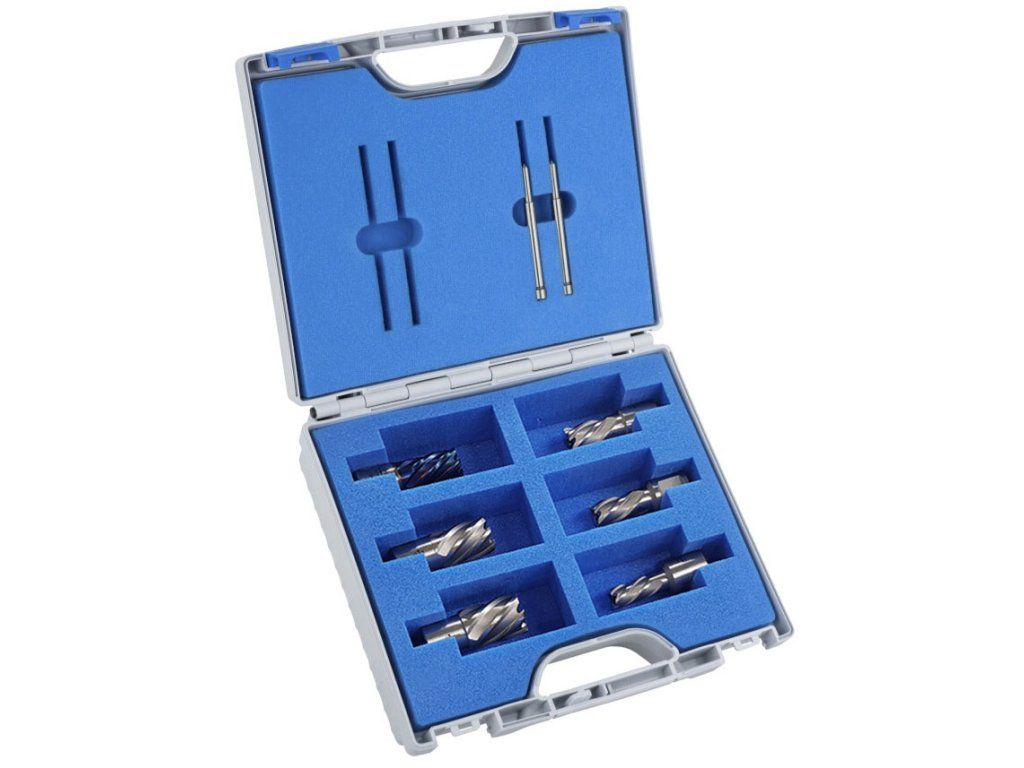 Šestidílná sada jádrových vrtáků v praktickém plastovém kufříku (Ø 12, 14, 16, 18, 20, 22 mm, délka 25 mm).