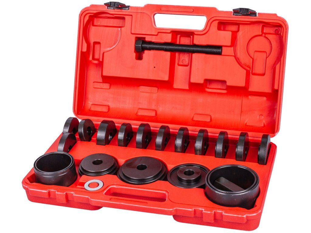 Univerzální sada na demontáž a montáž ložisek nabízí výběr z různých velikostí misek a distančních pouzder. Umožňuje použití na většině prodávaných automobilů.