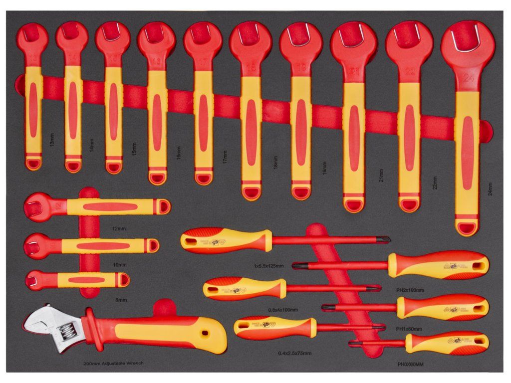 Sada izolovaných šroubováků a klíčů v pěnové výplni, 20 ks - AHProfi