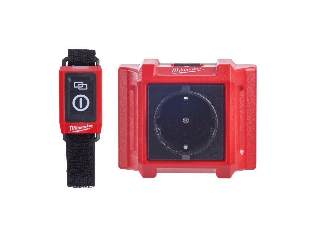 - Sada dálkově ovládané zásuvky a ovladače MILWAUKEE® spouští zařízení na střídavý proud jediným stisknutím tlačítka