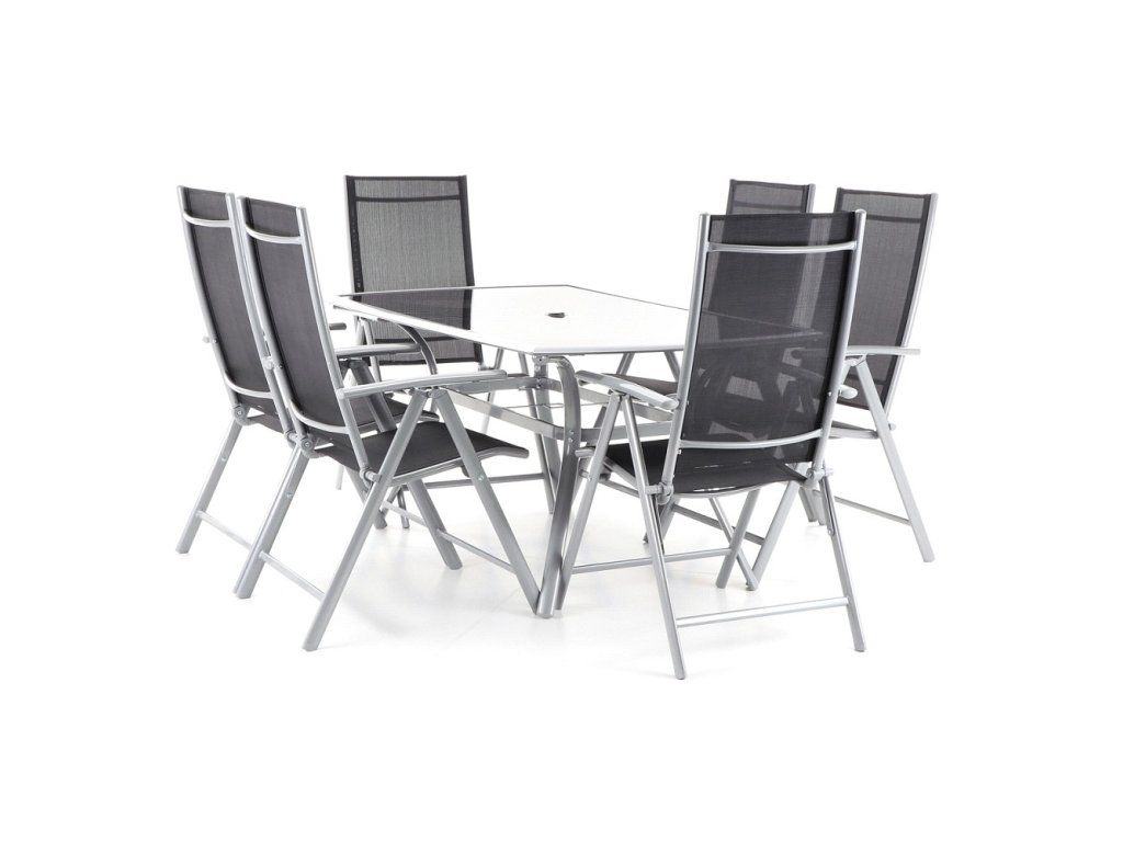 Luxusní stolová sestava 6-ti křesel a stolu z ocelo-hliníkových profilů povrchově dokončena komaxitovou úpravou.
