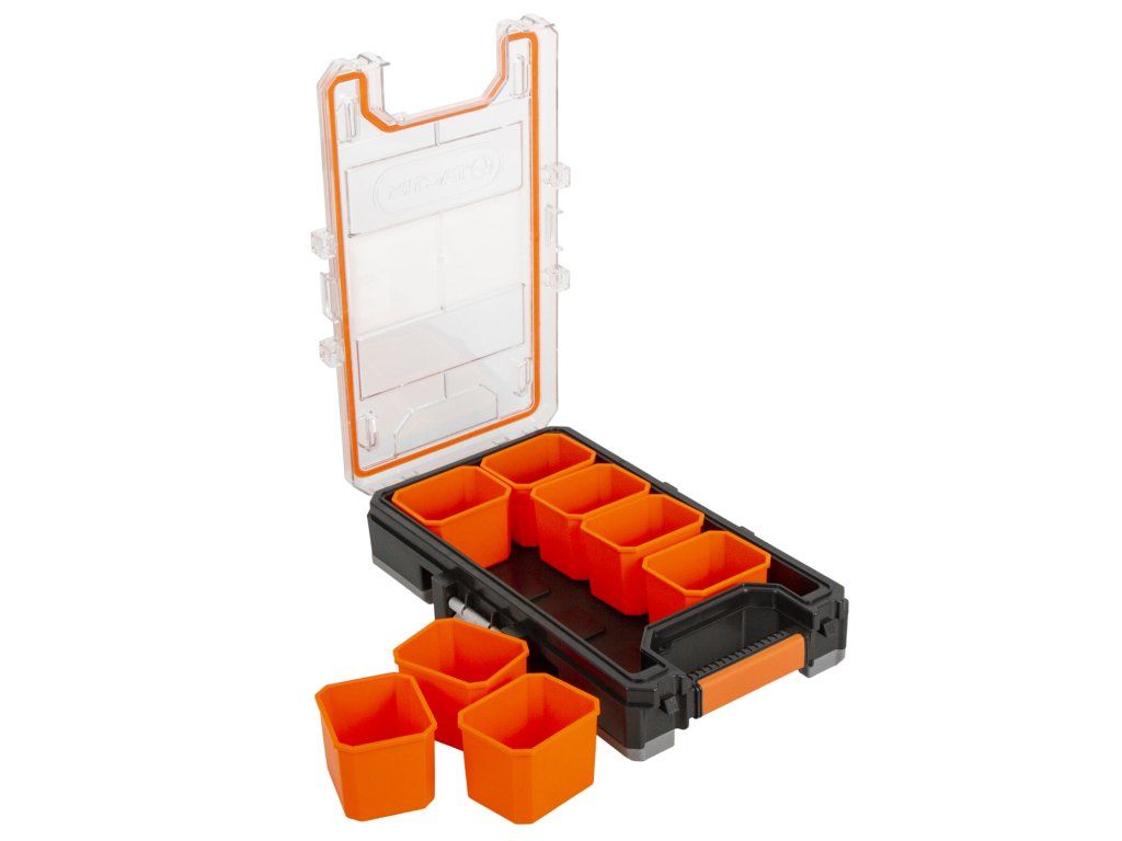 Vodotěsný plastový organizér na drobný materiál jako jsou například šroubky či matice.