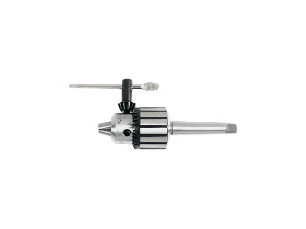 Kvalitní univerzální sklíčidlo se zakončením B16 na zadní straně, vhodné jak pro stolní vrtačky, tak pro soustruhy. Čelisti se uzamknou až po nejmenší průměr pro ukotvení i těch nejmenších vrtáků. Upínací trny Morse 1, 2 nebo 3 k dispozici. Maximální kapacita 13 mm, klíč na sklíčidlo je součástí balení.