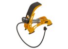 Kovová nožní hustilka s manometrem o rozměrech 95 x 90 x 290 mm.