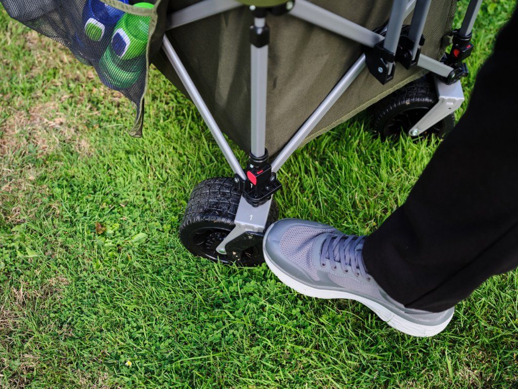 Odolný, robustní, skládací vozík, který je ideální pro přepravu spacáků, chladicích boxů, stanů nebo čehokoliv jiného. Integrovaný úložný prostor, extra úložiště na obou stranách vozíku, dlouhá skládací rukojeť. . Široká kolečka s brzdou poskytují skvělé pojezdové vlastnosti a lze je odejmnout jedním stisknutím tlačítka.Hmotnost: 9,70 kg Nosnost (litry): 170 L Nosnost (kg): 180 kg Rozměry v rozloženém stavu: 100 x 50 x 106 cm, Rozměry ve složenéím stavu: 80 x 17 x 24cmDoplňkové parametry
