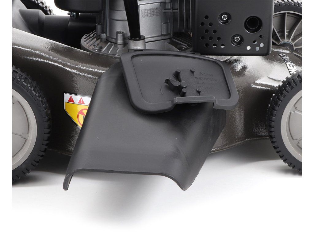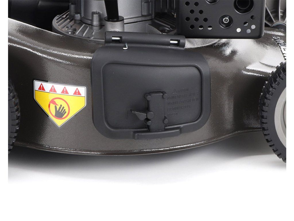 bočním výhozem, mulčovat i zadním deflektorem a má variabilní pojezd daný profesionální 3-rychlostní kovovou převodovkou. Výhoda silného motoru WEIBANG o super výkonu 7 HP a nože s velkými lopatami Vám perfektně sebere i přerostlou mokrou trávu.